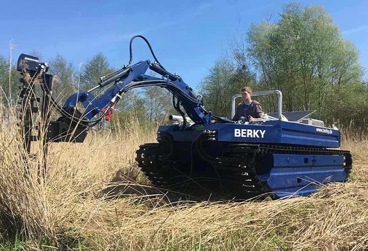 Whether on land or water, the BERKY NEREUS 240 AMPHI is versatile. The BERKY NEREUS 240 AMPHI combines boat and vehicle in one machine. The manoeuvrable and compactly built machine thus not only allows work in the middle of the water, but also in the hard-to-reach marginal areas, in shallow places and in swampy areas.